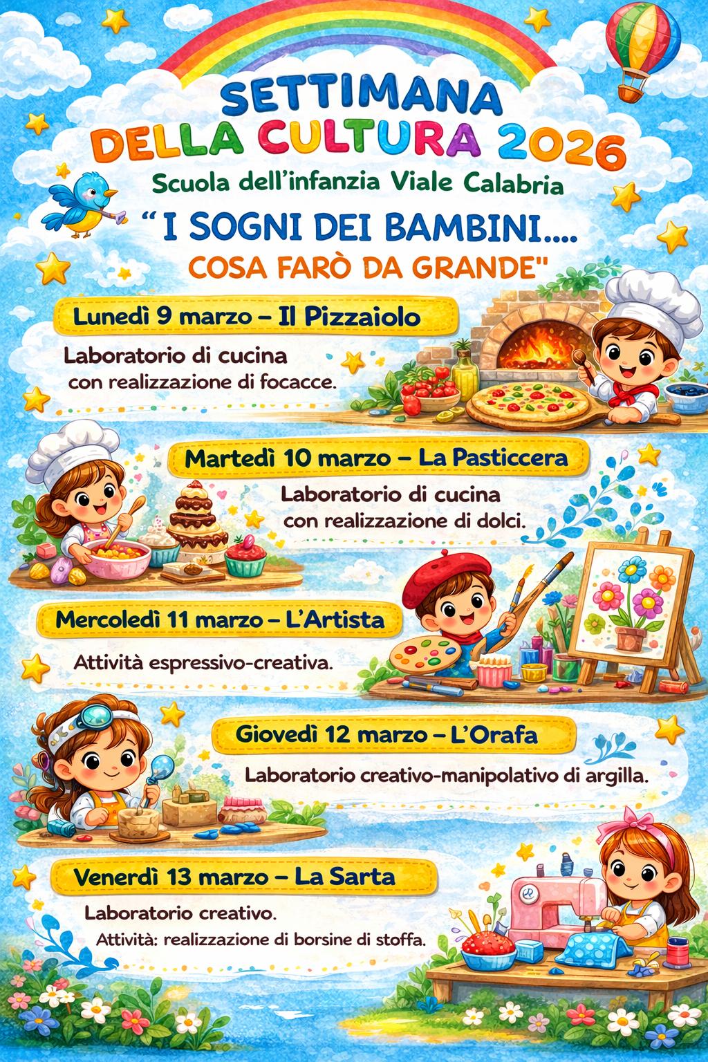 L’Istituto comprensivo Lodi Secondo promuove la settimana della cultura dal 9 al 13 marzo 2026. Quest’anno il tema sarà il Sogno.