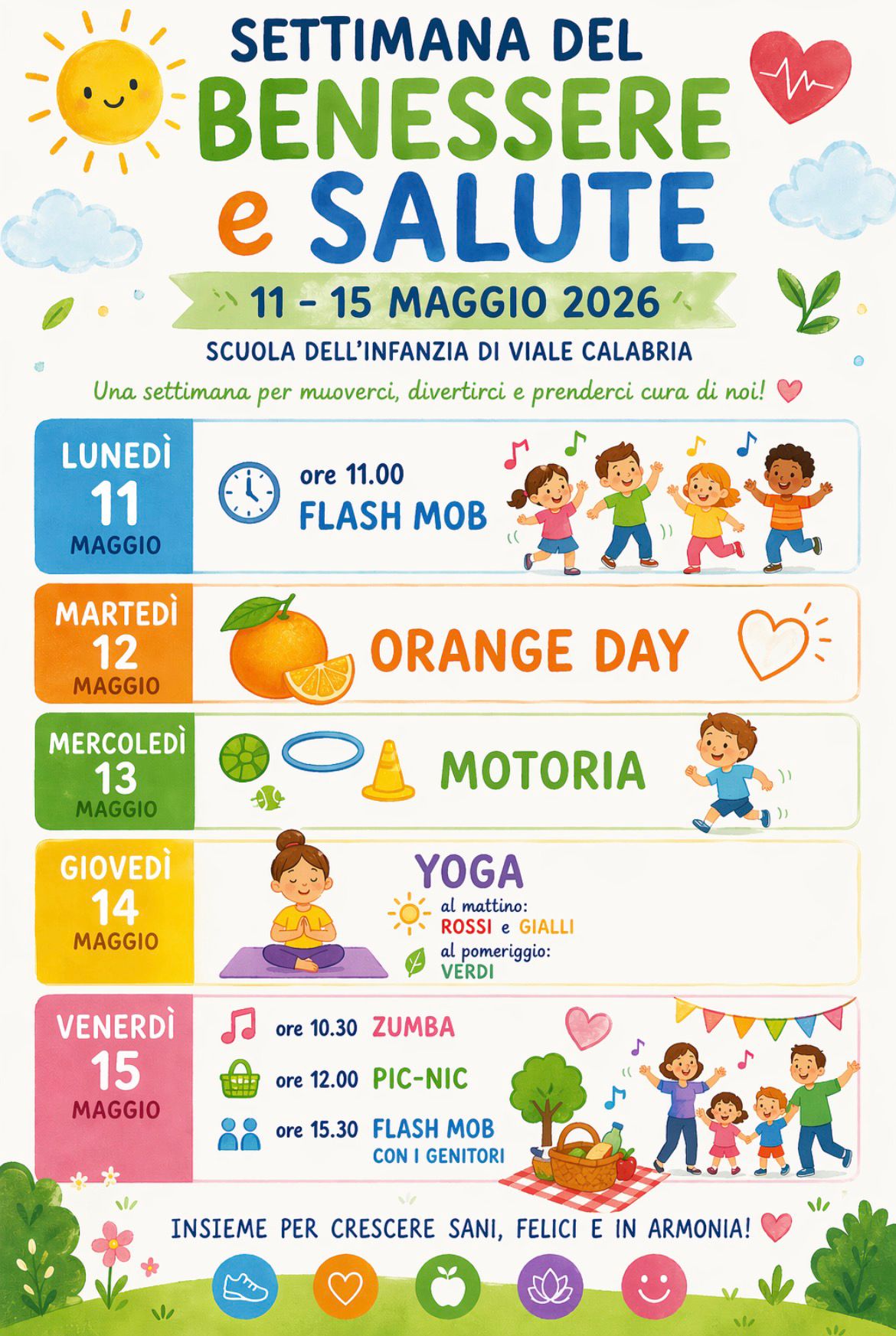 La scuola dell’Infanzia di Viale Calabra è lieta di presentare le sue attività per la settimana della salute e del benessere dell’Istituto. In allegato la locandina